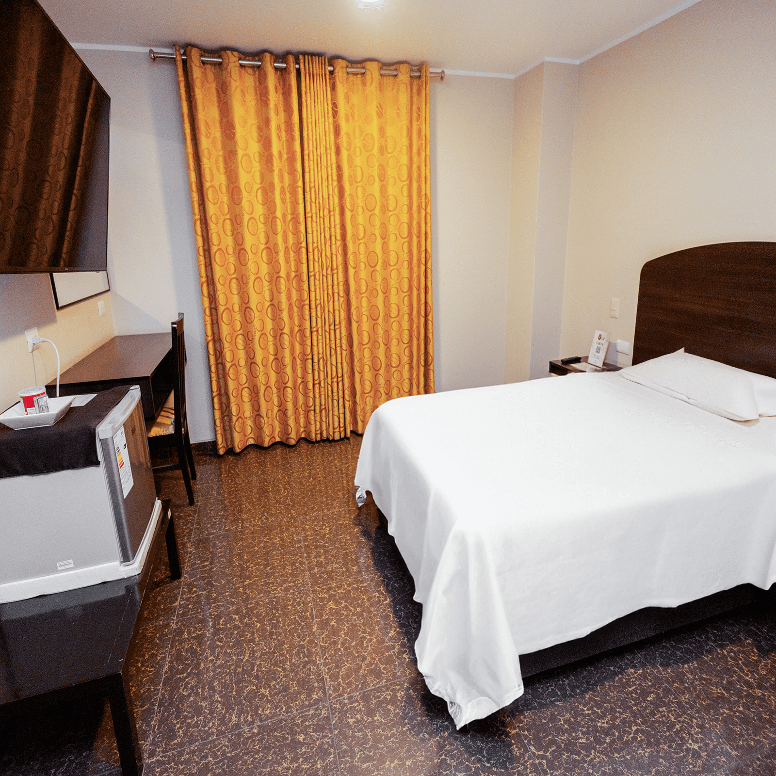 Todas las habitaciones cuentan con: -TV -Cable -Wifi -Agua caliente -Room service -Cochera -Restobar
